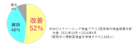 MCIスクリーニング検査を複数回受けた方のうち50%以上が検査結果の改善をしています。