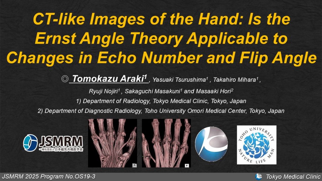 演題名:CT-like images in the hand : Fundamental study of the flexor tendon and extensor tendon imaging(手部におけるCT-like images:屈筋腱と伸筋腱描出の基礎的検討)